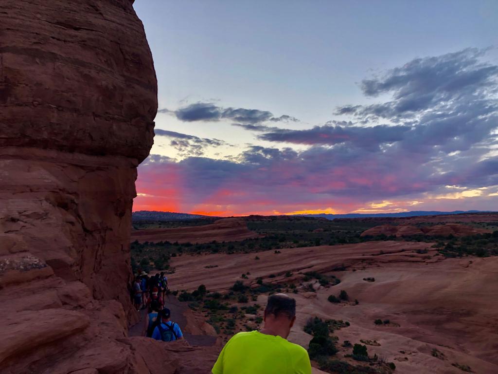 Even though it was showing heavy traffic in the park entrance, we were able to get in without any delay. We drove into the park and our first arch in our list was Delicate Arch. It’s a free standing arch and the recognized symbol of the state of Utah. This arch is pictured in the Utah state board at the Colorado Utah state line.