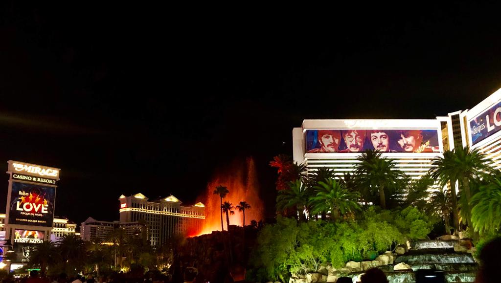 We woke up around 8:00 P.M and had a small dinner. We really needed to go fast on our small tourist route of Treasure Island and Bellagio. We started off with our first destination – The Mirage Volcano Show. We took our car and parked it at the Treasure Island parking garage and took the tram to The Mirage hotel where we got of and reached the place where the Volcano show is going on. We realized that we were late because the show was almost over. But my dad got a lot of pics, or at least I think so. There a couple of ants bit me and I was dancing like I had my back on fire. From there our next stop was the Caesars Palace. But this time I had to say bye-bye to car because we were walking on foot. Along the way we passed by some Roman/Greek statues. After what seemed like 50 million minutes we finally reached what looked like the Caesar palace. Next to it there is Gordon Ramsay Hell’s kitchen. But at the opposite side of the road there was a Ferrari car parked advertising some company. We took some photos of it and started going forward to our destination with a bottle of water as our refreshment, but as soon as I climbed the stairs to the pathway to Caesar palace, I was sooo hungry and tired after all that walking. Even if we did not go to Paris to see the real Eiffel Tower up close or the miniature one down the street I saw it in the view from the top of the bridge. Now all I needed to do to reach Caesar palace was to go through a bridge. But it was over the road which is kind of weird if you ask me. As soon as I got in, I wanted to go to all the restaurants in that area but that dream ended with one reason: my parents did not bring their wallet. We finally got through the Caesar palace and to our next destination – the Bellagio fountain to see the fountain show. There were storm troopers and other characters in movies around the fountain and the show lasted for about 30 minutes. The water looked like it was actually levitating all over the place. But sometimes I was just thinking about how tired I was and how hungry I was.