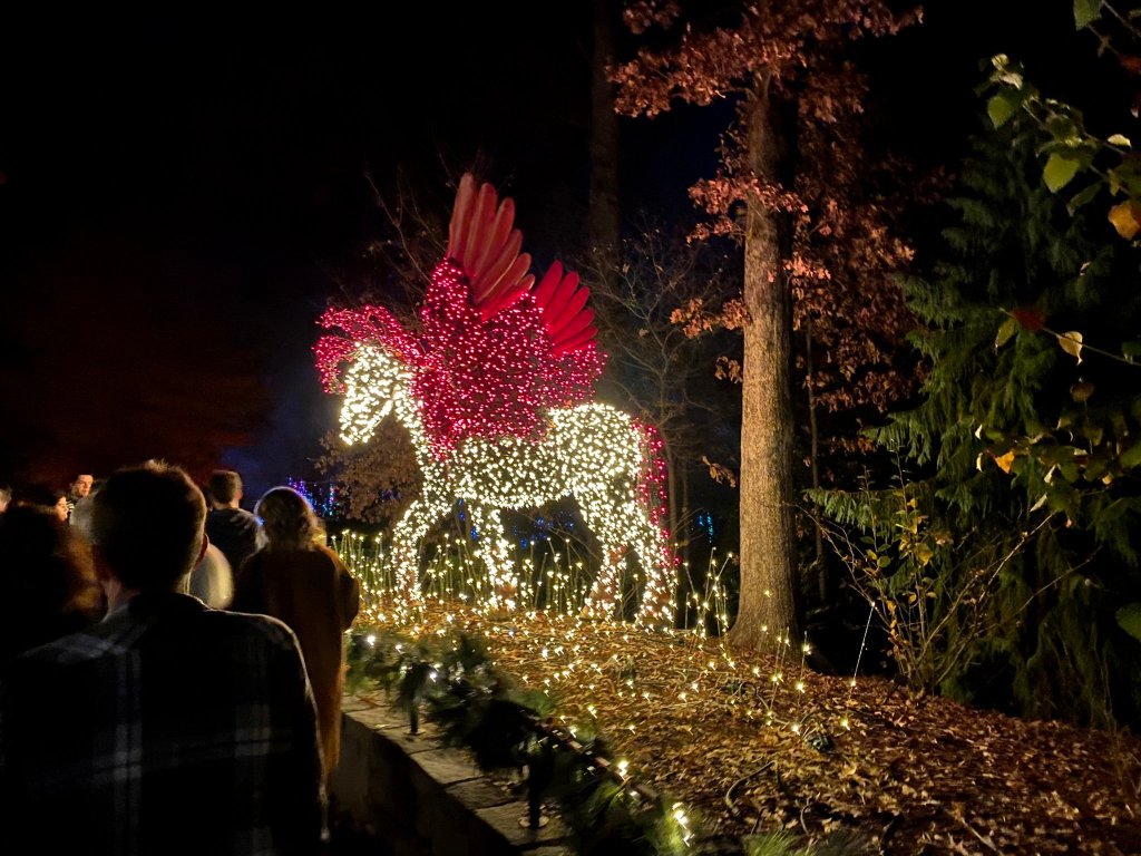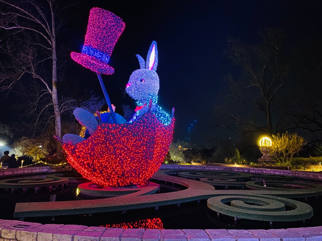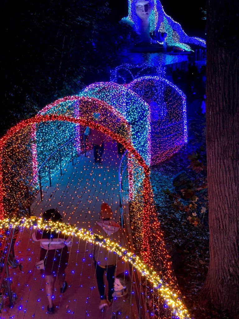 This time, it was to the Atlanta Botanical Garden. I wasn’t exited to see the garden because it was a cold night and I didn’t think a garden is that interesting. But as I entered, I saw thousands of lights like tiny, colorful, fireflies covering almost everything in the garden. As we trekked deeper into the park, I saw a sculpture of a Wooly Mammoth engulfed in light from nearby spotlight. After closer inspection, I found out the sculpture was made with plants. I took some photos: