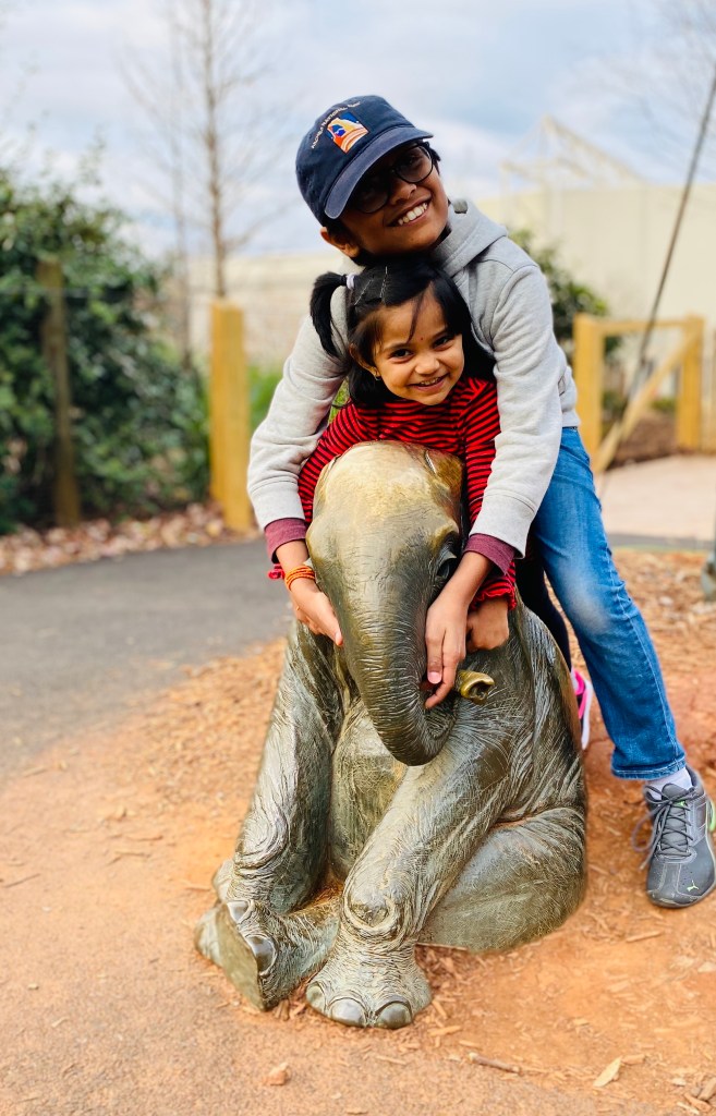 The Monkeys and Gorillas were next; it was their feeding time. A park ranger came and threw Peaches, Plums, and Apples at the Gorillas. They snatched it out of the air and even fought for it. The enclosure where they are is the enclosure that the zoo kept Ivan from “One and Only Ivan” book by Katherine Applegate. Gorillas are shown to understand us and have learned sign language. The park ranger showed us an example of this. The next paddock was called The Living Treehouse where special birds were placed like the Golden Pheasant. There was a huge nest inside the building. My sister and I took a photo on the nest like tiny birds: