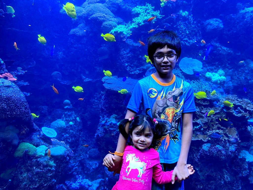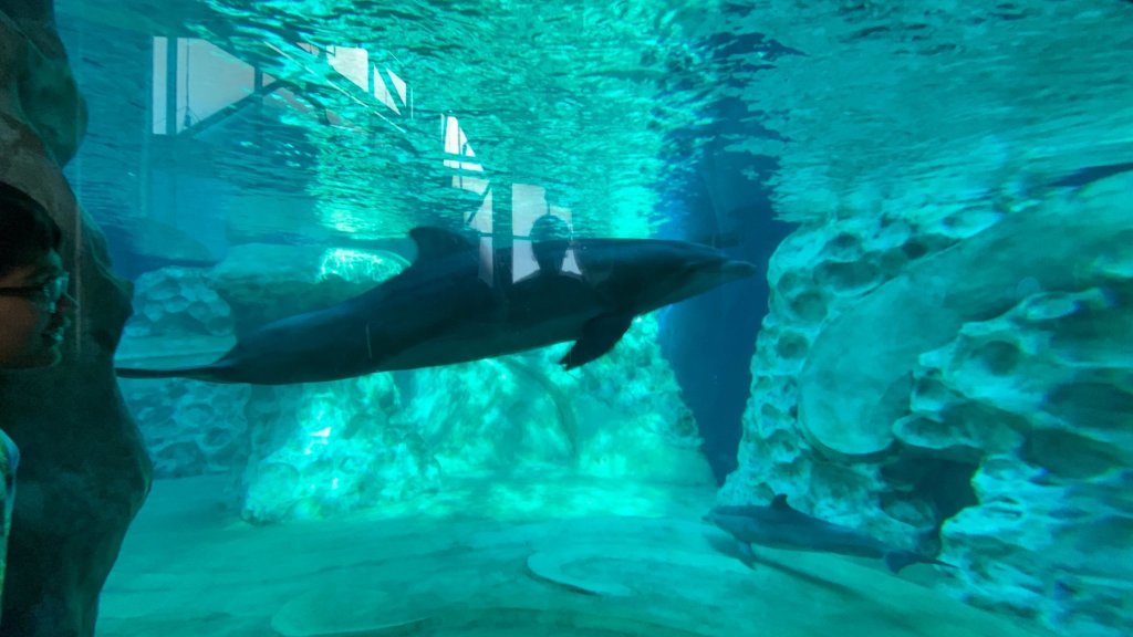 The next exhibit was called The River Scout. It had tons of river fish, amphibians, and one special mammal named the River Otter. I am saying this because out of all the animals in these exhibits I want to show the best and most popular ones. I totally didn’t forget all the special and amazing animals in the exhibit. Totally. The info pad said that River Otters wash themselves after every meal. That was a fun fact but we didn’t see that behavior there. The River Scout exhibit had a passage in the top and bottom floor and you can only see the River Otters in the bottom floor. It’s pathetic merges with the next Exhibit’s path, Dolphin Celebration.