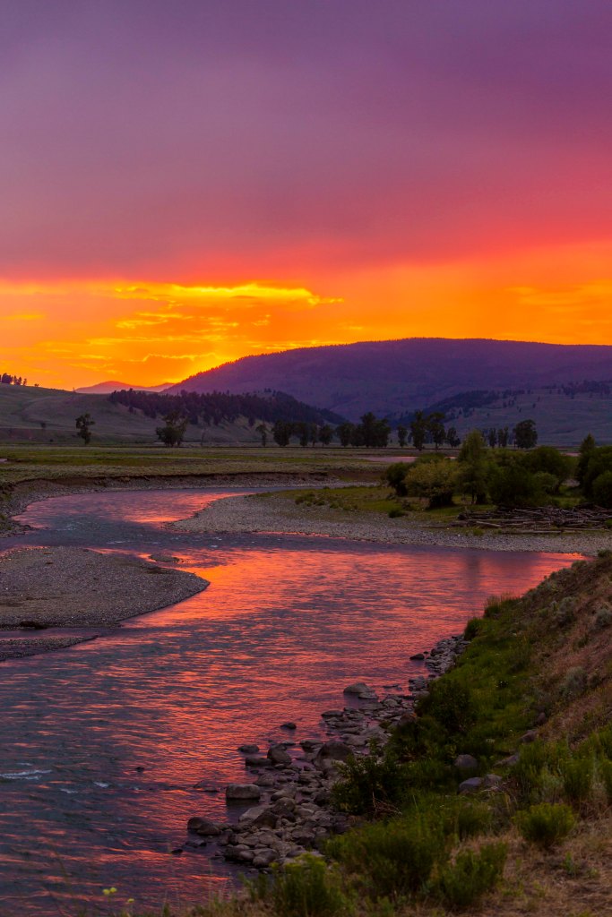 That was it for Mammoth Hot Springs. After that, we went to Lamar Valley to see some more wildlife. And we did. Some Deer, Bison, Prongorns, Foxes, Coyotes, Wolves, and even a Bald Eagle. The canines we saw were far away though so we did not see them clearly, only through binoculars. We went all the way to the north entrance of the park to Montana and by the time we went back, there was an awesome sunset waiting for us. Naturally, we went took a lot of photos.