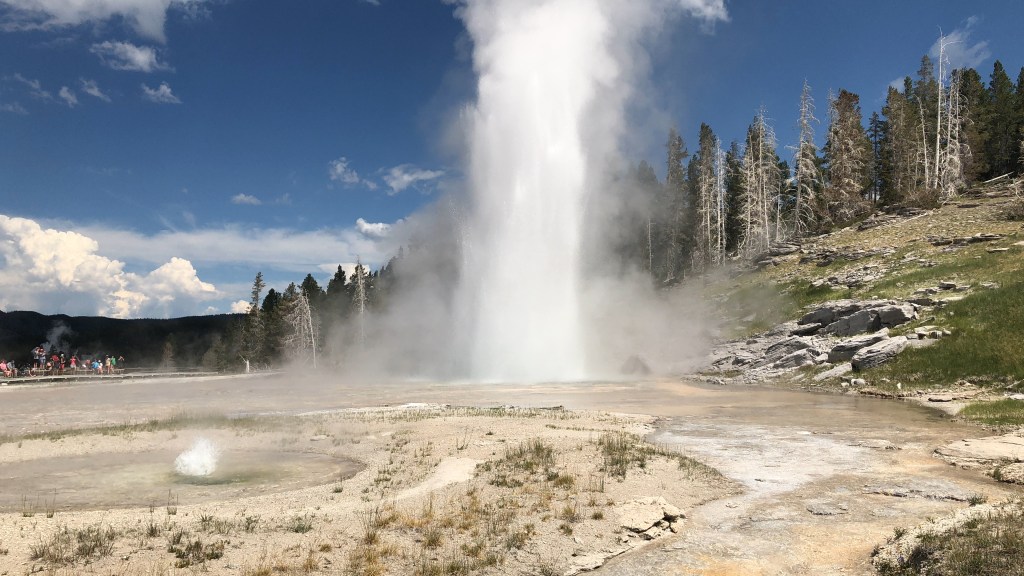 Vent Geyser is the last geyser in this group (this group of geysers are literally called the Grand Group). Vent Geyser usually erupts at the start of a Grand Geyser eruption and lasts an hour after Grand’s as stated above in the other paragraph ↑↑↑↑↑↑. Vent Geyser’s eruptions start at 75 ft then gradually declines to 40 ft. Sometimes, on rare occasions, Vent Geyser can erupt before Grand Geyser’s eruption or completely by itself.