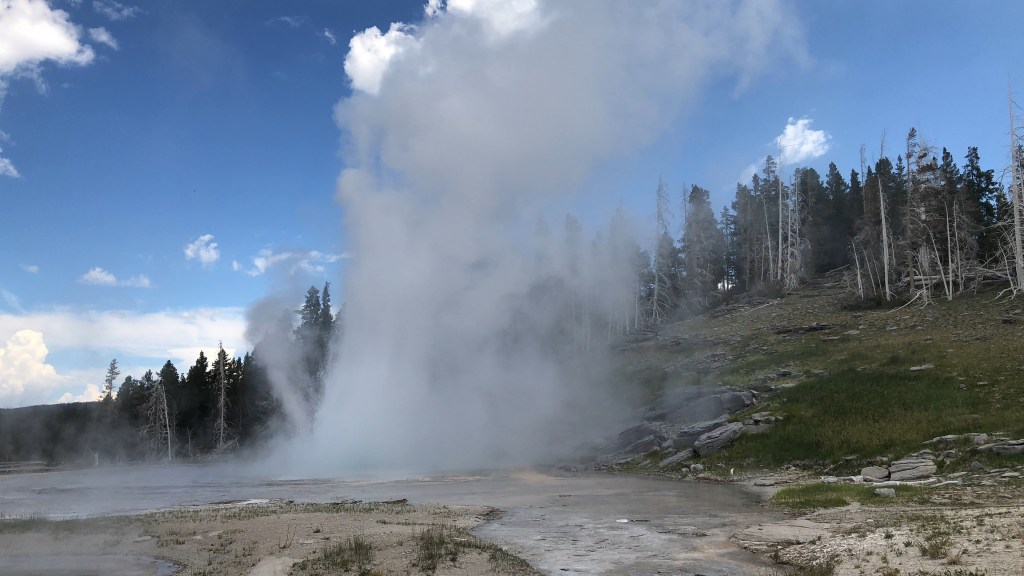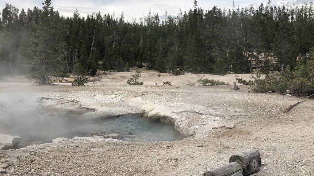 We also saw another geyser while we were exiting the Norris Geyser Basin, but I unfortunately don’t know the name of that geyser. After the basin, we went to Lamar Valley to see some wildlife. We did not go very far and we started to see foxes and coyotes running. Unfortunately, no photos. Sorry 🤷🏾.