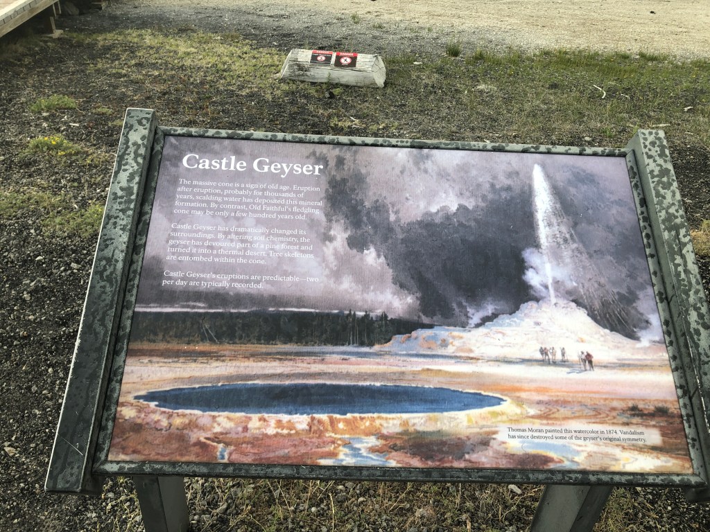 Two geysers we did not see were Castle Geyser and Beehive Geyser. Castle Geyser is like Grotto Geyser; they are both formed from sinter-covered trees and that is why Castle Geyser’s shape is like a castle. The Geyser has an eruption interval of 10-12 hours. The spray goes
