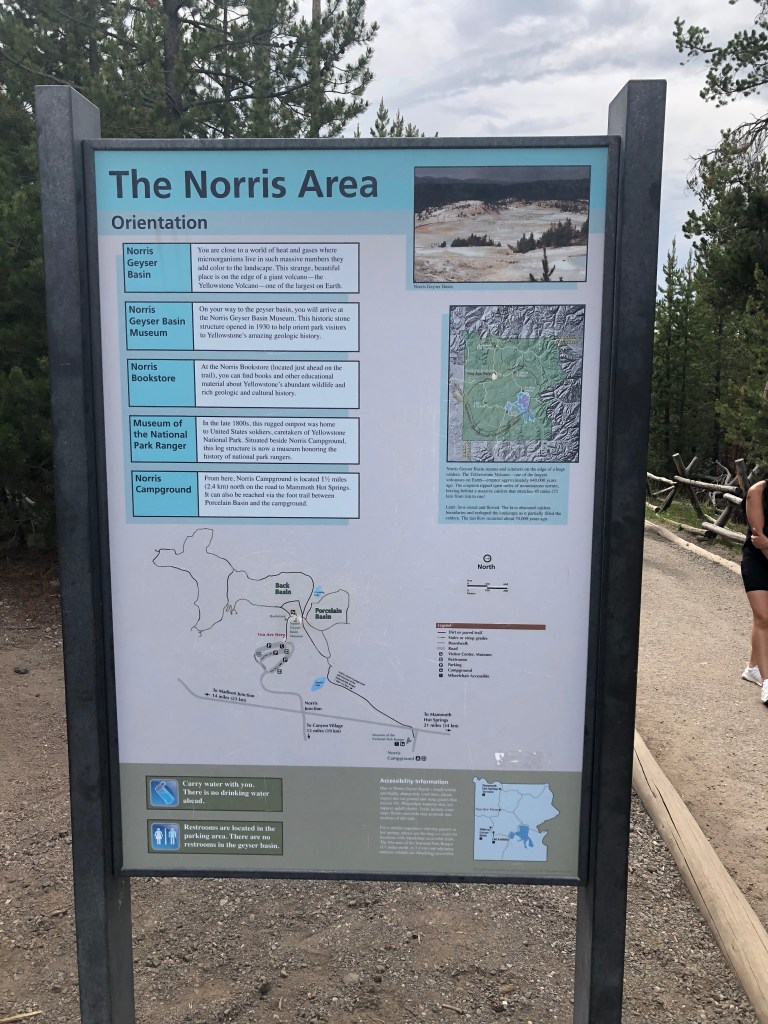 Now you may be asking, “The Midway Geyser Basin is all done, so where will you go next”. Well, I have just the answer to that, because we went to Norris Geyser Basin next. The Norris Geyser Basin is just like the Upper Geyser Basin where there are a lot of hydrothermal features, so I will just tell you guys about the famous ones here too.