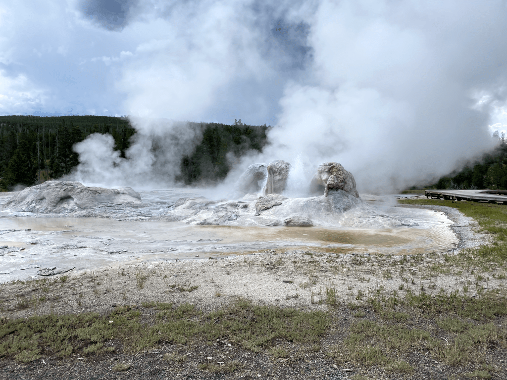 Grotto Geyser has a specific shape; it was formed from sinter covered trees. Eruptions are 10 ft and can last up to 10 HOURS!!!! That is a long time for geysers. But that’s not all. On very rare occasions, it can go over 10 hours, up to 26 HOURS, which is the longest time for an eruption ever recorded for Grotto Geyser.