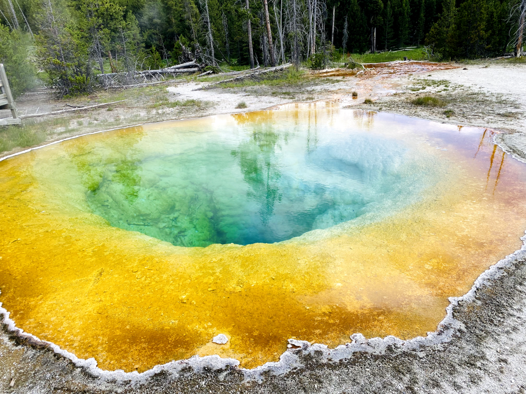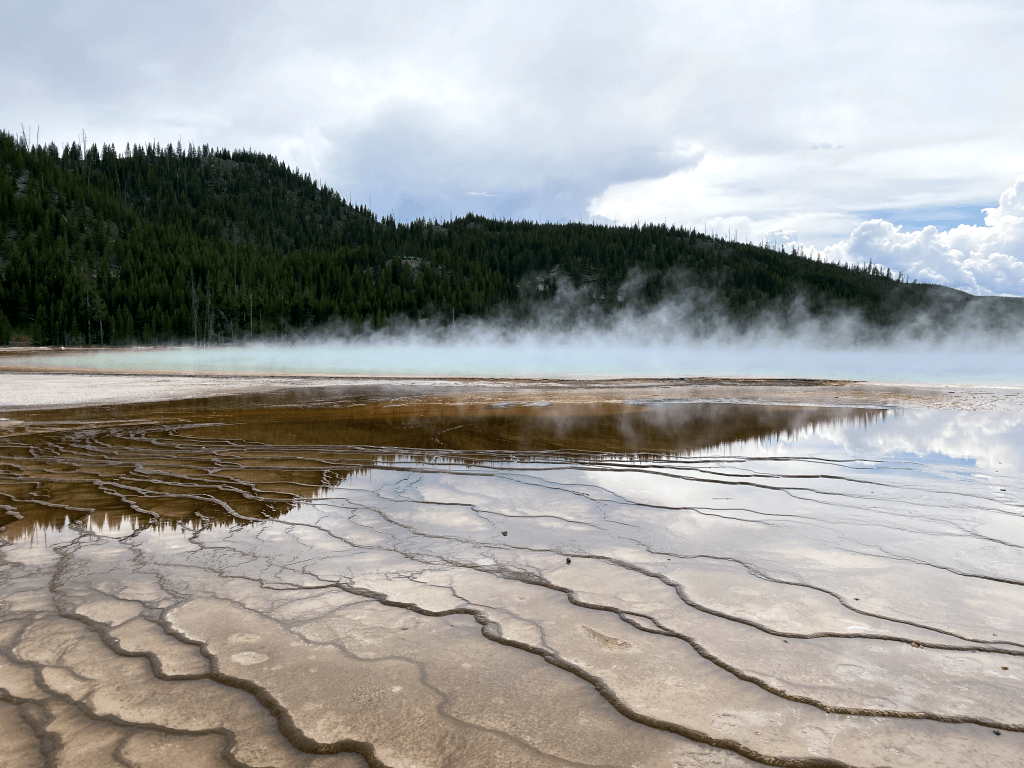 As a result, the heat of the pool is perfect enough for red-colored cyanobacteria to live in, so the colors of the spring have changed. Morning Glory is referred to by park officials as “Faded Glory”. As we left Morning Glory, it started to rain.