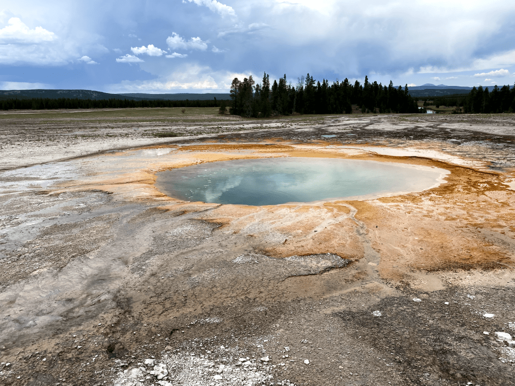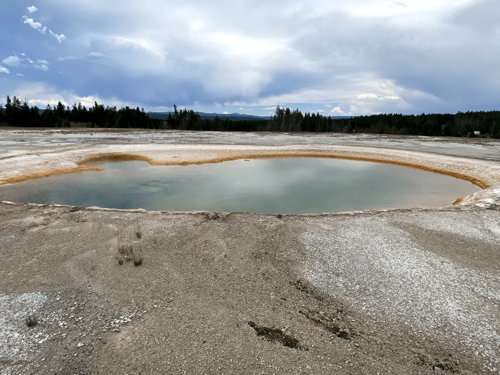Turquoise Pool is a hot-spring with temperatures of 142 and 160 °F (61 and 71 °C). Turquoise Pool has a connection to the Excelsior Geyser just like Indigo Pool, (a small hot-spring by the side of Excelsior Geyser). Not much is known about the Opal, Turquoise, and Indigo Pool. So I am going to leave it at that. Let’s get on to the BIGGER FEATURES in the Midway Geyser Basin.