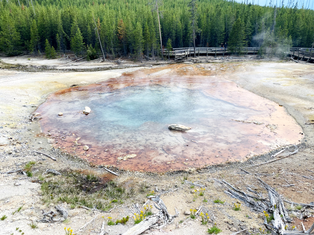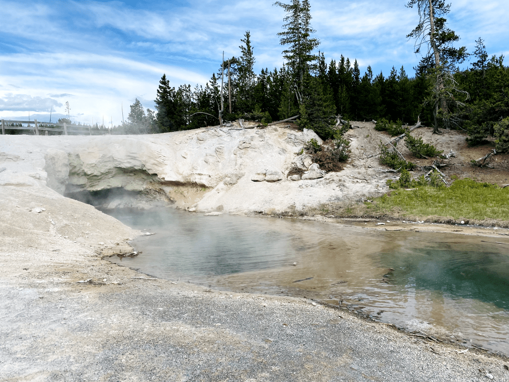 The last Hydrothermal feature I am going to mention in the Norris Geyser Basin is the Minute Geyser. We did not see this geyser, but it is one of the most famous geysers in the basin. It used to erupt every 60 seconds, like the name says, but it stopped being that wonderfully predictable due to the vandalism tourists did. By throwing rocks into the geyser vent, the geyser got damaged and now it erupts infrequently.