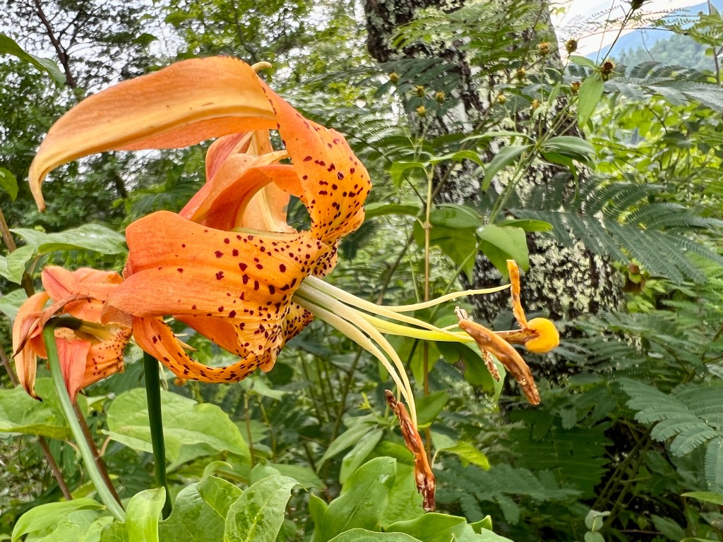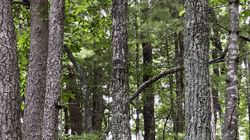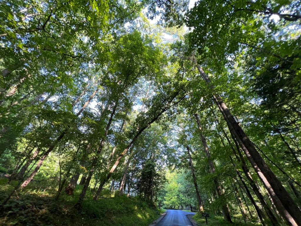 The second time we went on the loop we took a shortcut then we took another shortcut to the end of the loop. Then we went around the loop AGAIN and we climbed the Rich Mountain Road. Rich Mountain Road is a 7 mile winding road that has quiet view of Cades Cove. I say quiet because you can’t hear people talking. We chose this road because of the possibility of seeing bears. We went on this winding road and saw a Cross on a tree. Maybe there was a person buried there? We did not stick around long to find out. The only reason we saw the cross was because we were in a clearing with a view. I just happened to look on the other side.