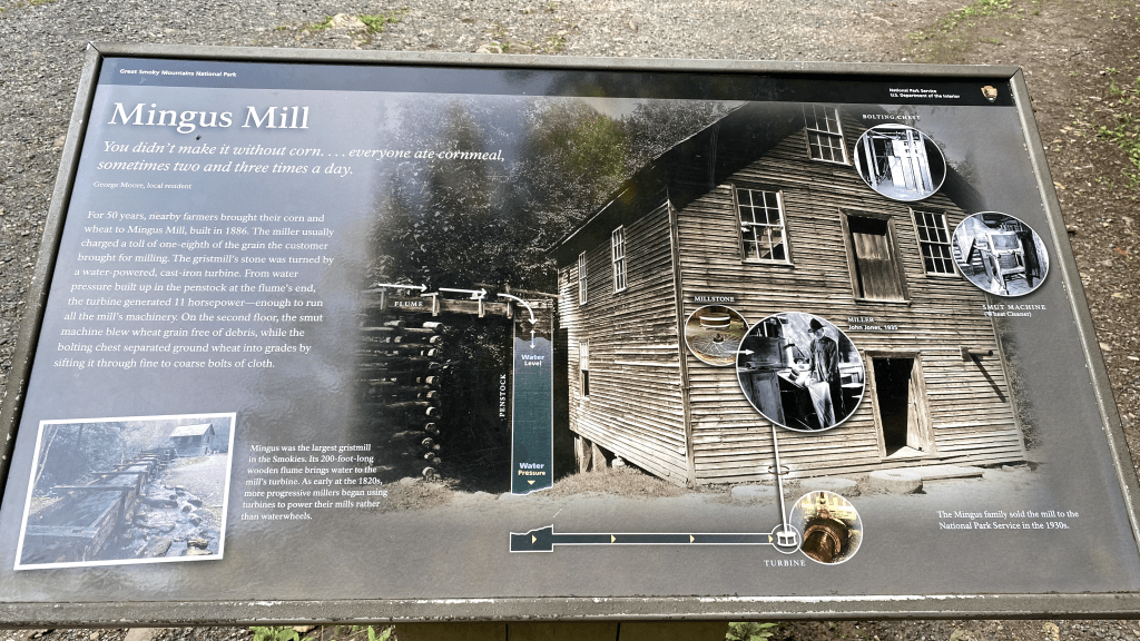 Next Place on the list was the Mingus Mill. The Mingus Mill is how the people of the valley got corn flour and wheat flour. The Mill draws water from the nearby Mingus creek and then it turns an iron turbine underneath the Mill which then grinds the wheat or corn into flour. Its actually cool to imagine, but we did not get to see the inside of the Mill because we were too late. The Mill was closed by the time we reached it. After the Mill, we decided to go to Blue-Ridge Parkway.